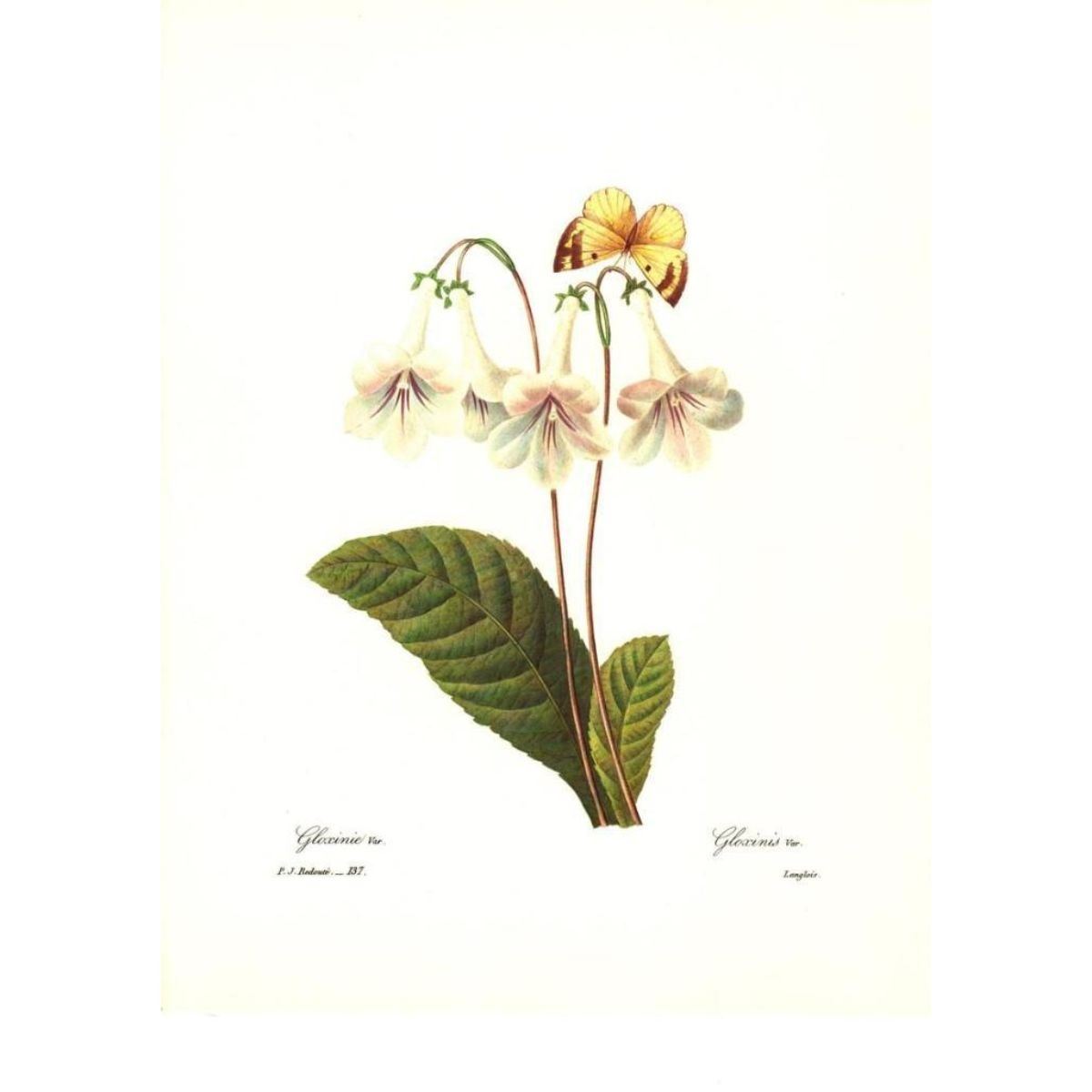 Modern print, after Pierre-Joseph Redoute ( French 1759-1840 ) Original Redoute stipple engravings with hand-coloring bring thousands of dollars per print. This modern re-print was created in the 1980's. 11" X 14". Comes with mat & backboard ready to frame. Redoute is unquestionably the best-known botanical illustrator of any era. The decorative appeal of his original engravings led to their modern reproduction, which in turn popularized Redoute's work in a way unique among botanical artists. Born into a family of artists in what is now Belgium, Redoute's talent was recognized & encouraged from an early age. Eventually, Redoute had, as pupils or patrons, five queens & empresses of France, from Marie-Antoinette to the Empress Josephine & her successor, Marie-Louise. Despite many changes of regime in a turbulent epoch, he worked without interruption, eventually contributing to over fifty works on natural history & archeology. The luminosity of stipple engraving, a technique perfected by Redoute, is particularly suited to the reproduction of botanical detail. The medium involved engraving a copper plate with a dense grid of dots that could be modulated to convey delicate gradations of color. Because the ink rested on the paper in miniscule dots, it did not obscure the "light" of the paper beneath the color. After this complicated printing process was complete, the prints were finished by hand in watercolor, so as to conform to the exquisite models Redoute provided. Â
