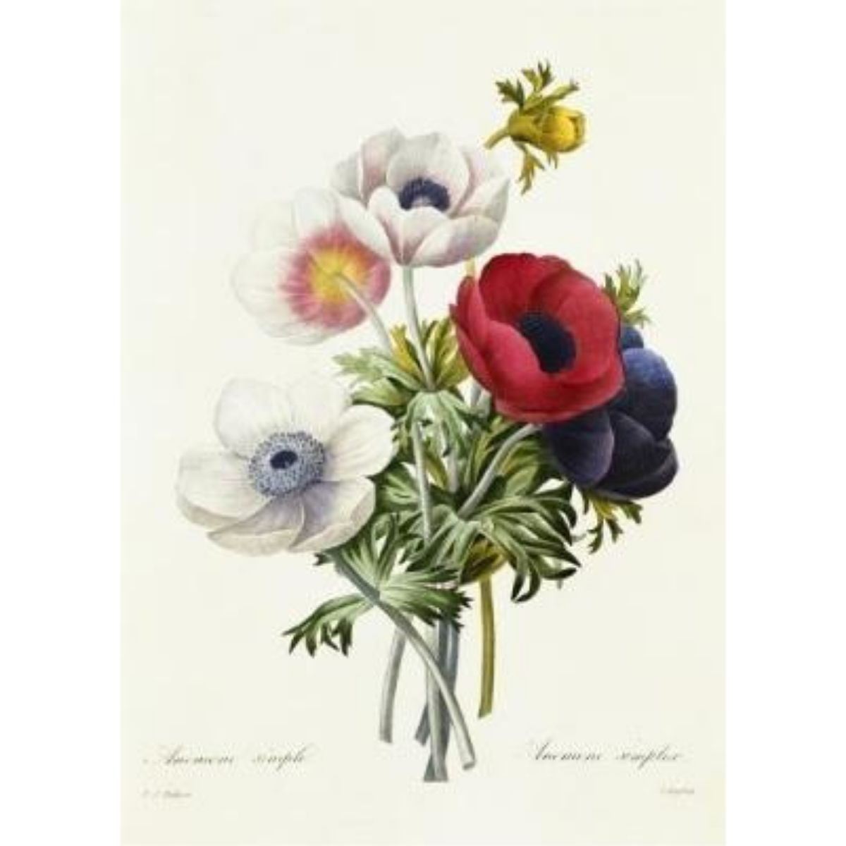 Modern print, after Pierre-Joseph Redoute ( French 1759-1840 ) Original Redoute stipple engravings with hand-coloring bring thousands of dollars per print. This modern re-print was created in the 1980's. 11" X 14". Comes with mat & backboard ready to frame. Redoute is unquestionably the best-known botanical illustrator of any era. The decorative appeal of his original engravings led to their modern reproduction, which in turn popularized Redoute's work in a way unique among botanical artists. Born into a family of artists in what is now Belgium, Redoute's talent was recognized & encouraged from an early age. Eventually, Redoute had, as pupils or patrons, five queens & empresses of France, from Marie-Antoinette to the Empress Josephine & her successor, Marie-Louise. Despite many changes of regime in a turbulent epoch, he worked without interruption, eventually contributing to over fifty works on natural history & archeology. The luminosity of stipple engraving, a technique perfected by Redoute, is particularly suited to the reproduction of botanical detail. The medium involved engraving a copper plate with a dense grid of dots that could be modulated to convey delicate gradations of color. Because the ink rested on the paper in miniscule dots, it did not obscure the "light" of the paper beneath the color. After this complicated printing process was complete, the prints were finished by hand in watercolor, so as to conform to the exquisite models Redoute provided. Â