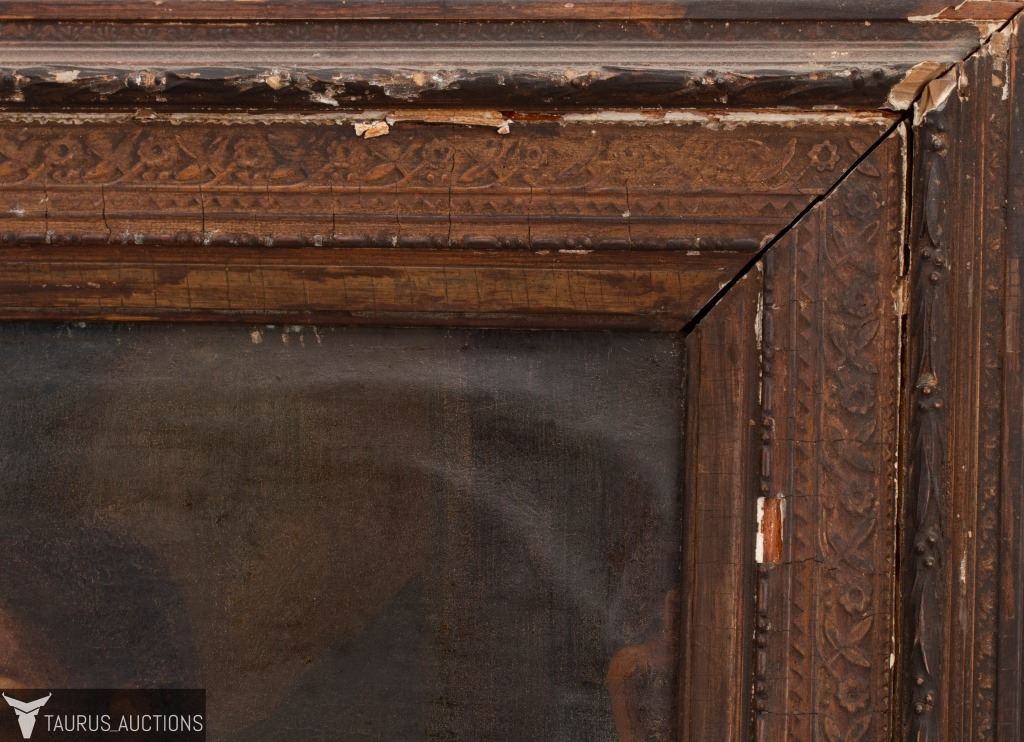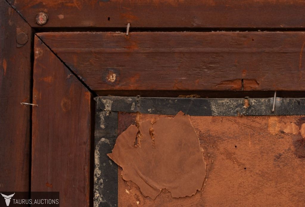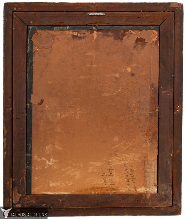 Condition: Warping, age and loss to canvas. Frame shows age, wear, chipping and loss to wood and paint.