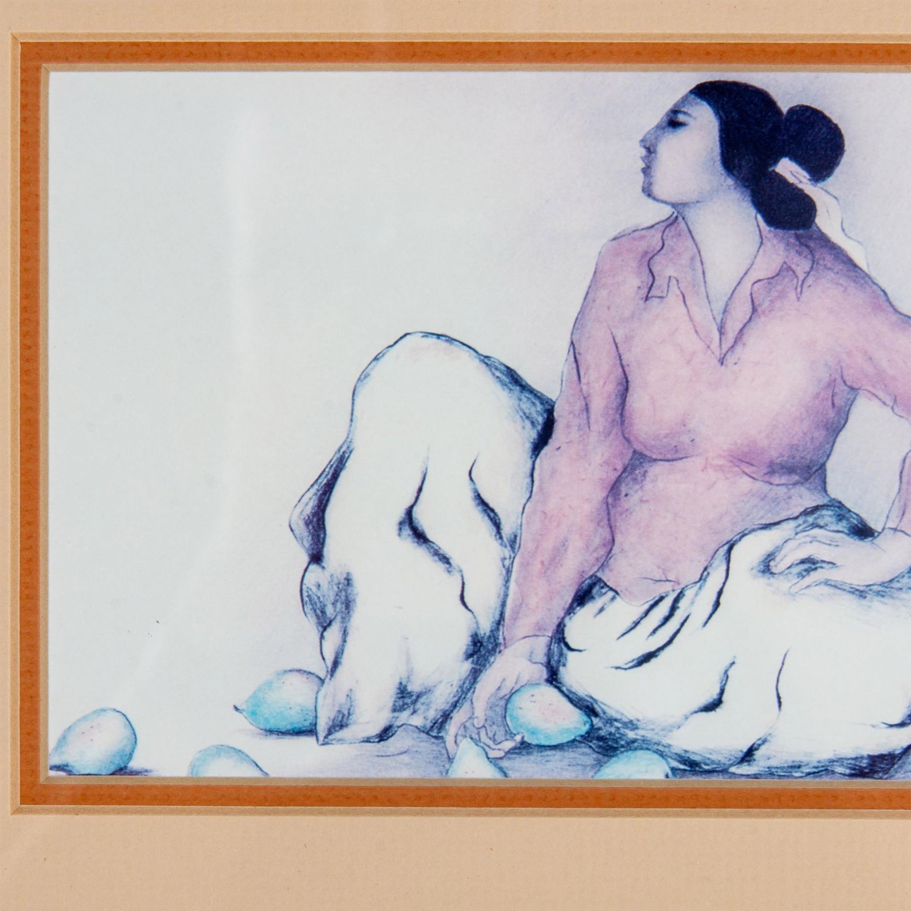 After R.C. Gorman, Offset on Paper, Navajo Woman with Pears