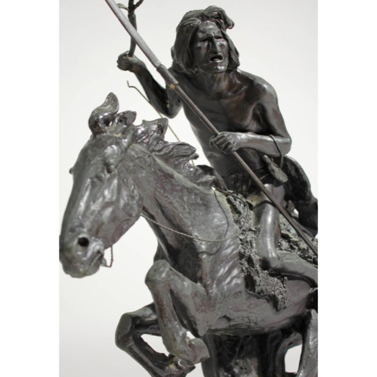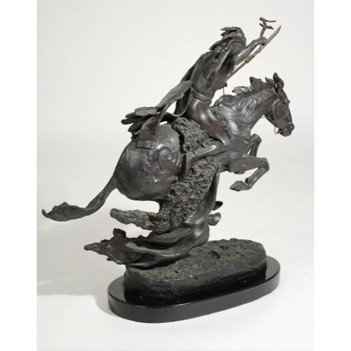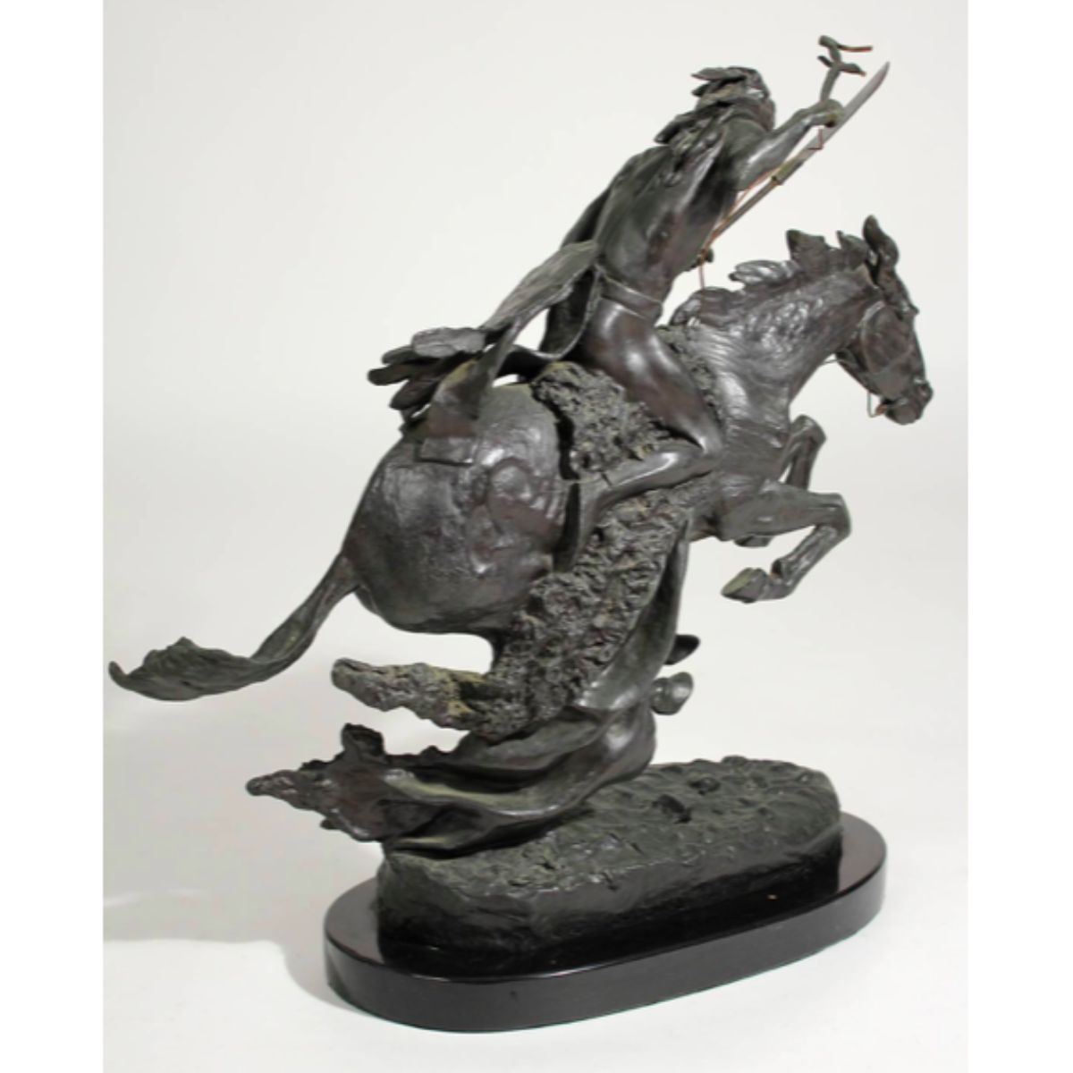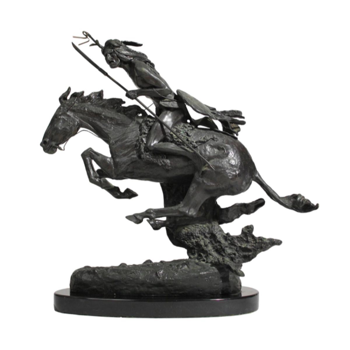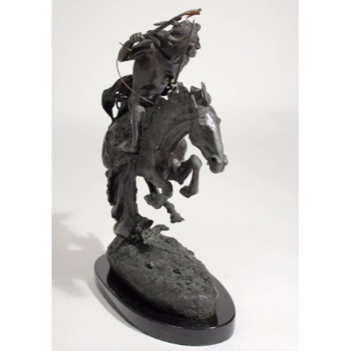 After Remington, "Cheyenne" Native American Indian lost wax casting bronze sculpture mounted on marble base. 11 1/2" H X 11" L.Â