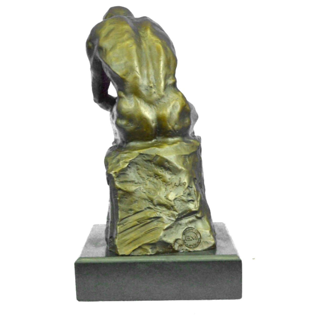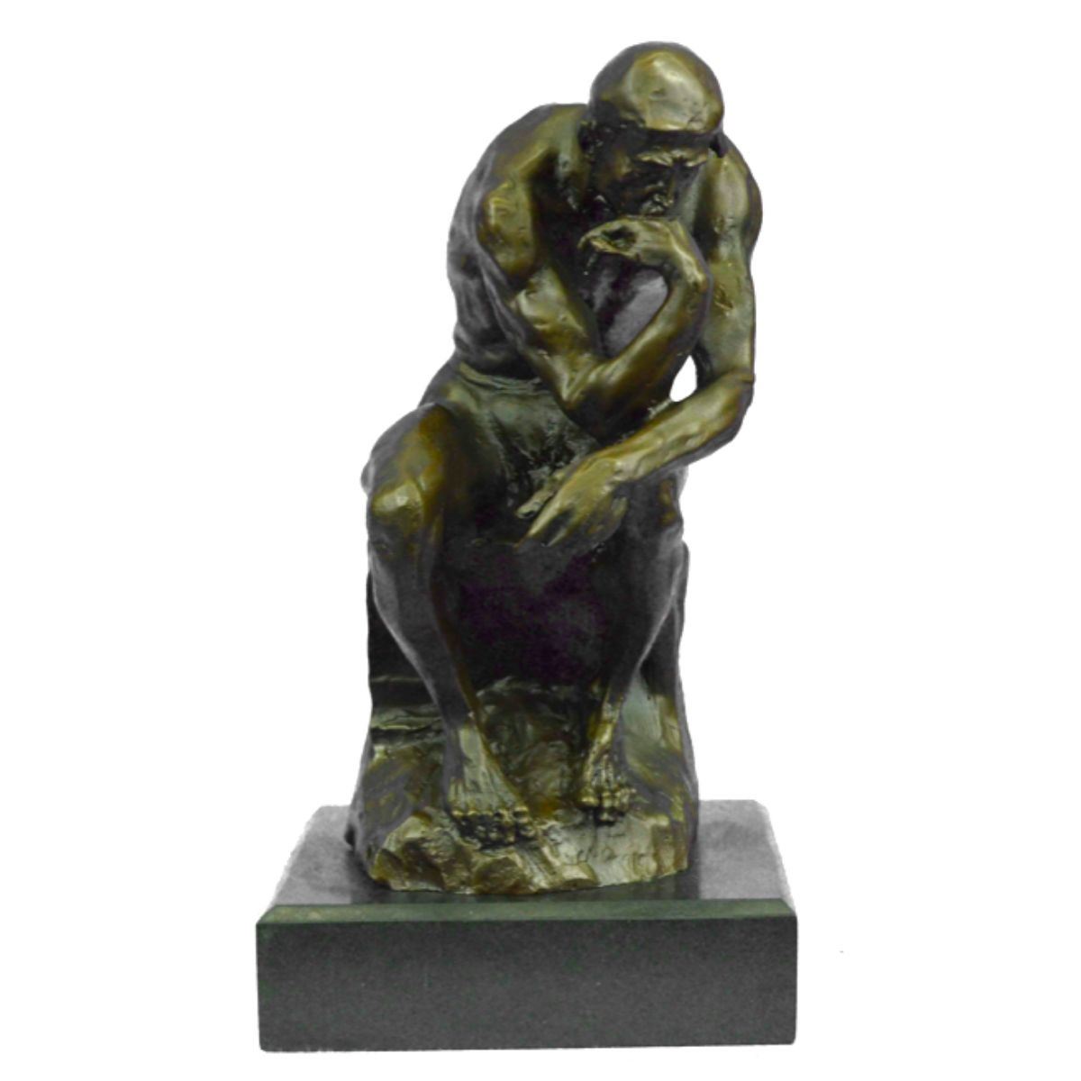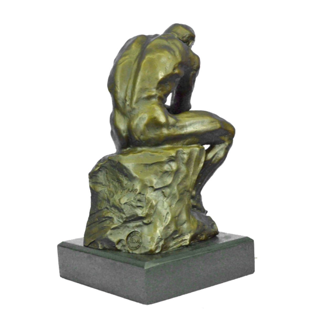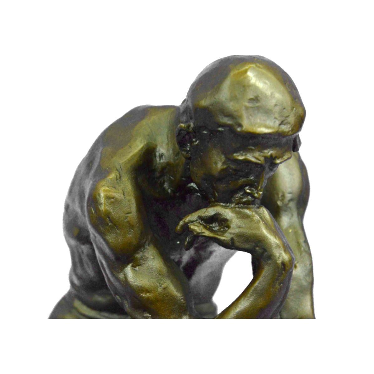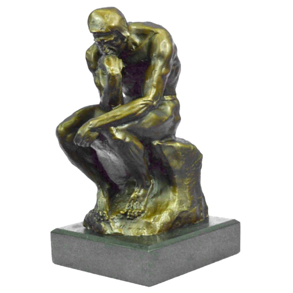 Recreated after the original sculpture The Thinker by Rodin. Lost wax casting method bronze, with brown patina, mounted on a marble base. Signed by the artist, Milo, on back 12" X 6". 13lbs.