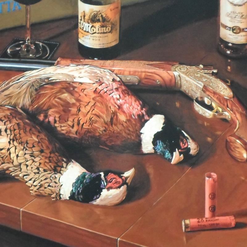 "After The Hunt" is a numbered limited edition giclee on canvas by Nobu Hairara. It comes bearing the artist's authorized signature and with a Certificate of Authenticity. Measures approximately 20"x30" (image).