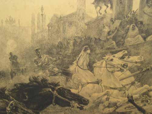 After V. Checa - chariot race - engraving, signed, 64.5cms x 94.5cms...