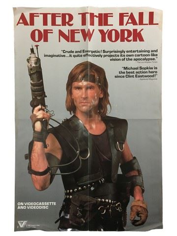 After the Fall of New York (Vestron Video, 1985). One Sheet. Starring: Michael Sopkiw. There are fold lines, creases, stains, paper loss, minor toning loss and minor edge wear damage. Fine. (24" X 36").