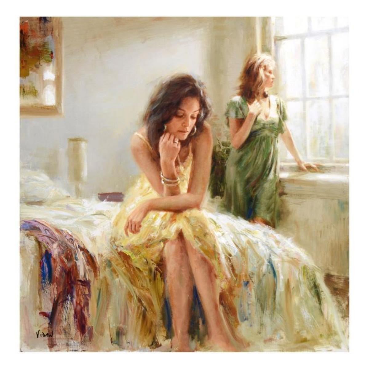 "Afternoon Light" is a limited edition giclee on canvas by Vidan, nephew and protege of Pino (1939-2010). Numbered and hand signed by the artist. Includes Certificate of Authenticity. Measures approx. 30" x 30" (image).