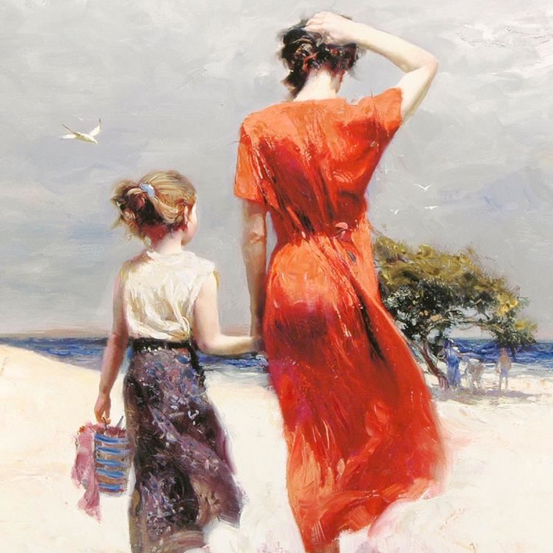 "Afternoon Stroll" is a limited edition giclee on paper by Pino (1939-2010). The piece comes numbered and is hand signed by the artist. Includes Certificate of Authenticity. Measures approxiamtely 16 x 16" (image).
