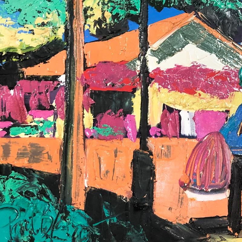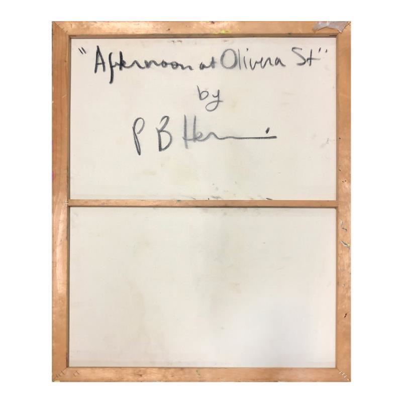 "Afternoon on Olivera St" is an original oil painting on stretched canvas by Paul Blaine Henrie (1932-1999). The piece is hand signed by the artist and comes with a letter of authenticity. Please note that due to the age of this piece and the way it was stored, there are minor sings of wear, particularly on the corners and edges. Measures approximately. 30" x 40" (image).