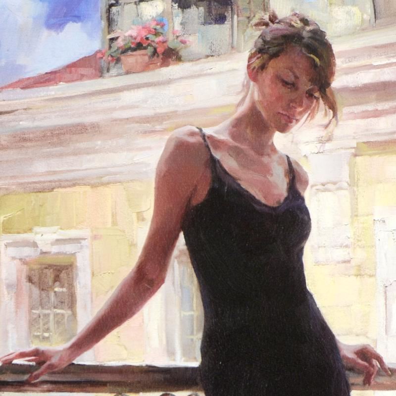 "Afternoon on the Balcony" is a limited edition hand embellished giclee on canvas by the husband and wife team, Mikhail and Inessa Garmash! This piece is numbered and hand signed by the artists! Includes Certificate of Authenticity! Measures approx. 16" x 24" (image).