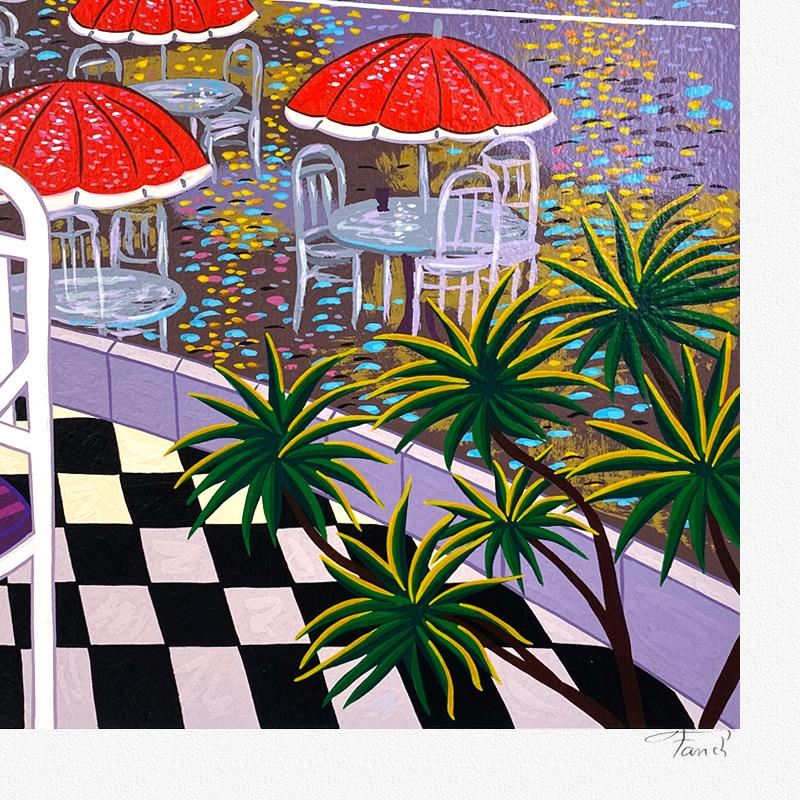 "Afternoons in Paris" is a limited edition serigraph on canvas by Fanch AP numbered inverso and hand signed by the artist. Includes Letter of Authenticity. Measures approx. 24.5" x 30" (image). This proof came from Fanch Ledans personal collection. It may have some slight imperfections in the image and border but its overall condition was inspected and approved by him.