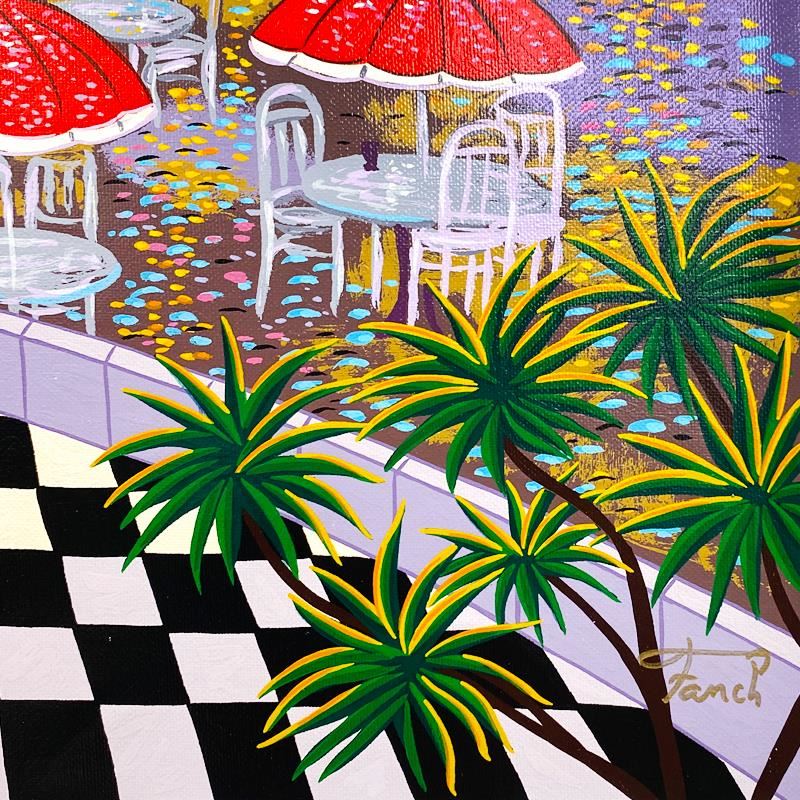 "Afternoons in Paris" is a limited edition serigraph on canvas by Fanch, AP numbered inverso and hand signed by the artist. Includes Letter of Authenticity. Measures approx. 24.5" x 31" (image). This proof came from Fanch Ledan's personal collection. It may have some slight imperfections in the image and border, but it's overall condition was inspected and approved by him.