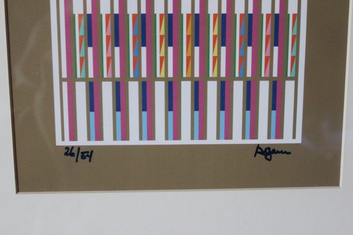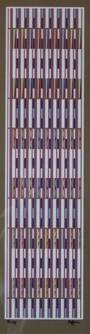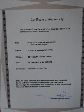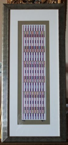 Yaacov Agam Hand Signed "Blue Vertical Orchestration" Gold Edition- Hand Signed And Numbered By The Artist - Professionally Framed - Comes With Certificate Of Authenticity - Frame Measure Appx 36 Inches X 17 Inches