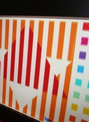 Yaacov Agam Hand Signed "Stars Of Hope" 1976 Special Edition Plexart Silkscreen - Mixed Media Of Mylar Plexart / Serigraph - Created For The Bicentenial- Hand Signed And Numbered By The Artist - Professionally Framed - Comes With Certificate Of Authenticity - Frame Measure Appx 38.5 Inches X 12.75 Inches