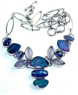 Silver and Agate, Fire Opal & Kyanite Necklace. Allow 6 to 8 weeks for delivery.