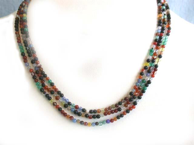 Agate Necklace approximately 3mm in bead size with Silver Clasp and 48 inches long