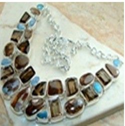 Silver and Agate, Smokey Quartz & Fire Opal Necklace