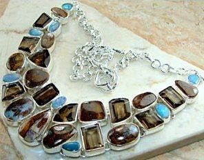 Silver and Agate, Smokey Quartz & Fire Opal Necklace. Allow 6 to 8 weeks for delivery.