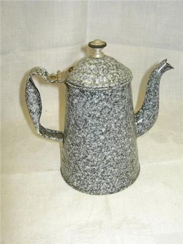 Agate Wear Coffee Pot, *noting: rust and damaged spout, measures 8 1/4" h