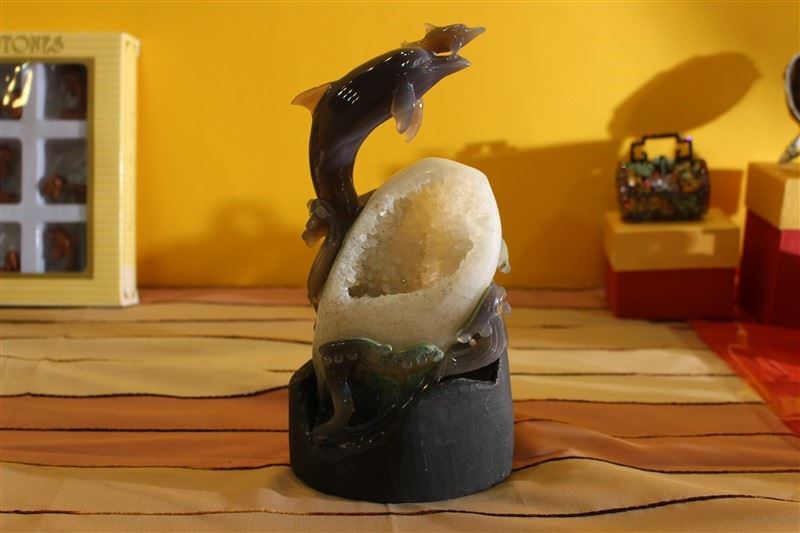 Agate With Stand Carving DOLPHINS #IGVR1258