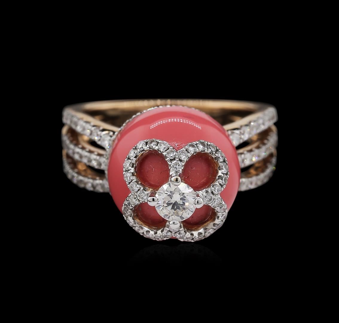 One ring featuring: 18KT rose gold weighing 6.17 grams containing one agate and side diamonds with a total weight of 0.74ct.