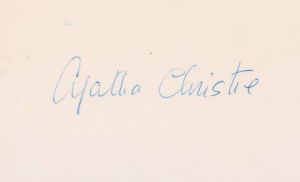 Uncommon ballpoint signature, “Agatha Christie,” on an off-white 5 x 3 card. In fine condition.