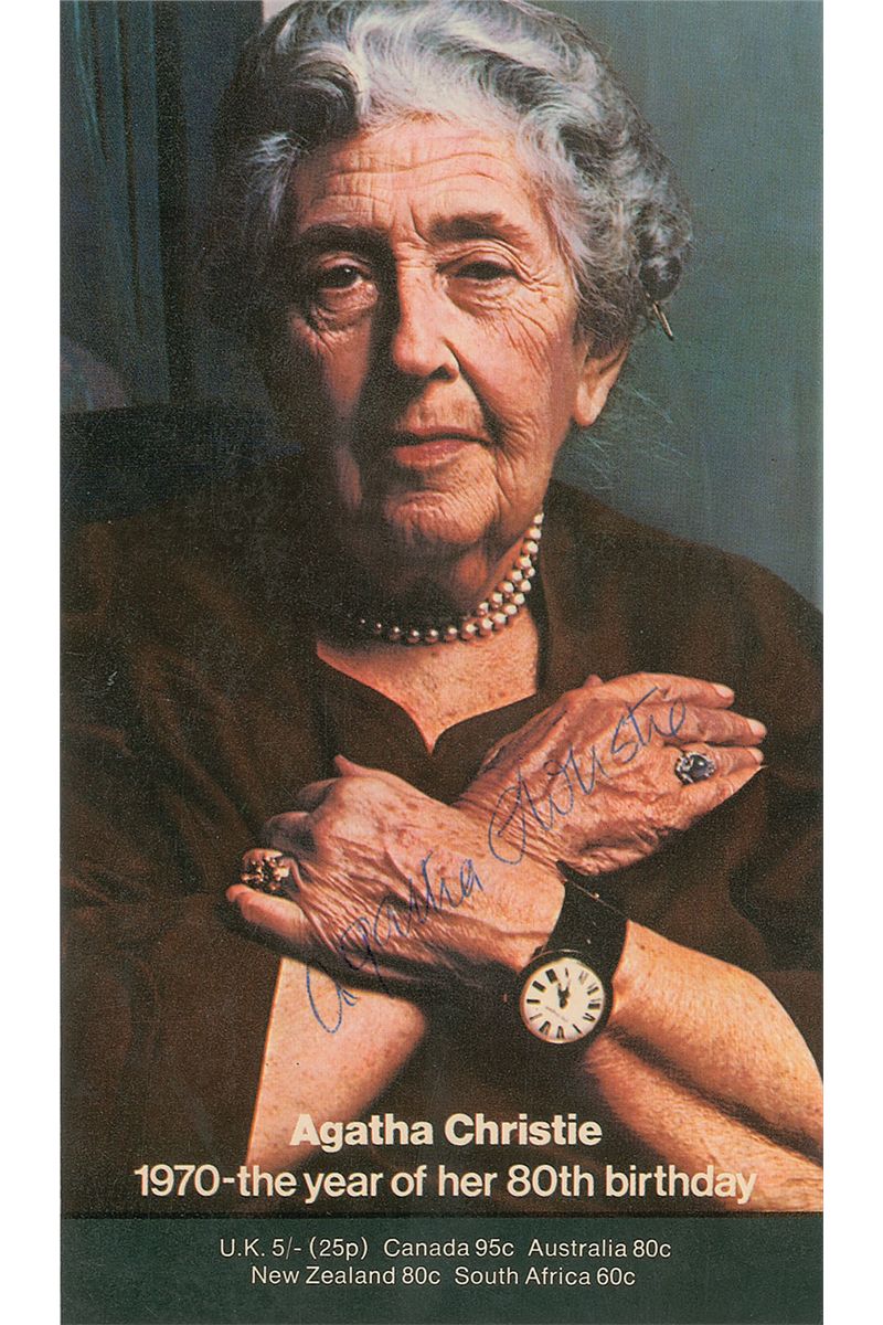 Color 4 x 7 cardstock photo of Christie printed to commemorate her 80th birthday, signed in blue ballpoint. In fine condition.