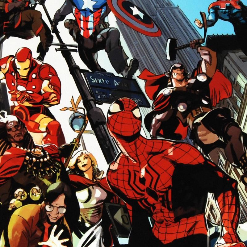 A piece of comic book history, this limited edition, from original art by Greg Tocchini, depicts an intense entourage of Marvel characters. Starting his career in 1995, Greg Tocchini has since done covers for such Marvel franchises as Thor, Captain America, and X-Men. "Age of Heroes #1" is a limited edition numbered giclee on canvas by Greg Tocchini presented by Marvel Comics. This piece comes gallery wrapped and ready to hang. Includes Certificate of Authenticity! Measures approx. 18" x 27" (image).