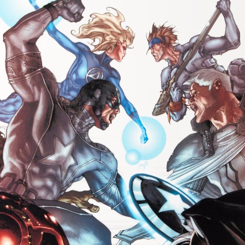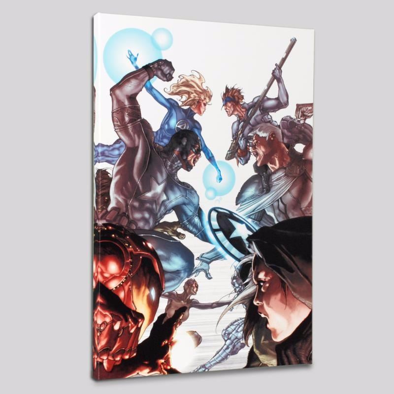 A piece of comic book history, this limited edition, from original art by Simone Bianchi, depicts an epic battle. Known for his use of ink wash in his work, Simone Bianchi is an Italian comic book artist famous for his X-Men Unlimited artwork. "Age of X: Universe #2" is a limited edition giclee on canvas by Simone Bianchi, presented by Marvel Comics. This piece comes gallery wrapped and ready to hang. Includes Certificate of Authenticity! Measures approx. 18" x 27" (image). Retail Price $500.00. PRICE INCUDES FREE SHIPPING IN THE U.S. - SHIPPING WILL BE ADDED TO YOUR INVOICE FOR ALL BUYERS OUTSIDE OF THE U.S.