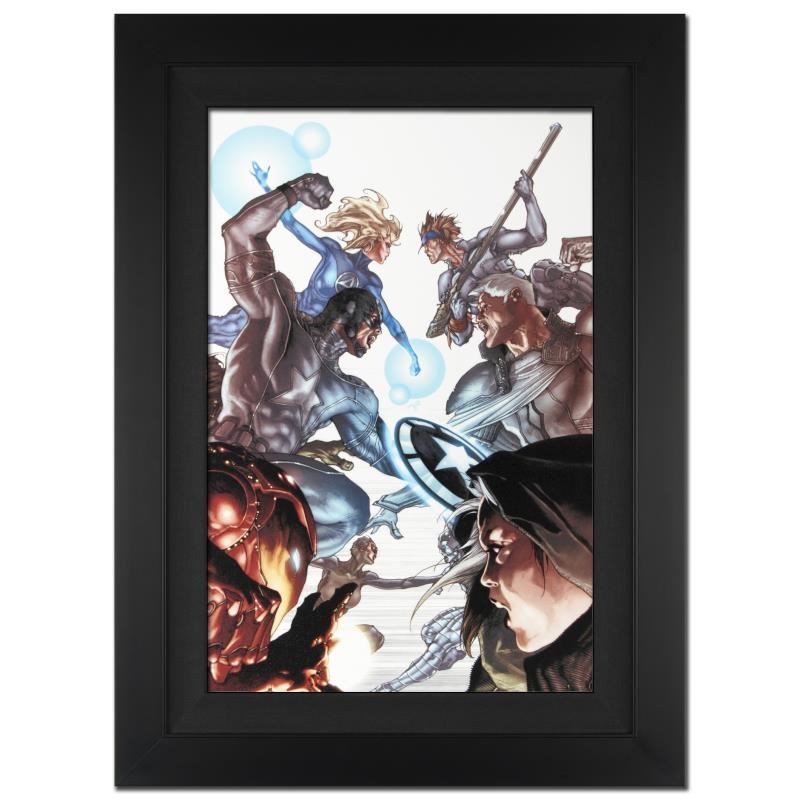 A piece of comic book history, this limited edition, from original art by Simone Bianchi, depicts an epic battle. Known for his use of ink wash in his work, Simone Bianchi is an Italian comic book artist famous for his X-Men Unlimited artwork. "Age of X: Universe #2" is an extremely limited edition giclee on canvas by Simone Bianchi presented by Marvel Comics, hand signed by the great Stan Lee and numbered out of only 10! This piece comes custom framed and ready to hang. Includes Certificate of Authenticity! Measures approx. 25" x 34" (with frame); 18" x 27" (image).