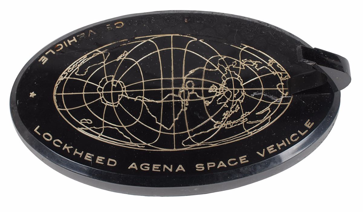 Early model of a Lockheed Agena-B upper stage space launch vehicle, measuring 10.75? long, with original 9.25 x 5.25 plastic base. In fine condition, with soiling and some lettering missing to base.