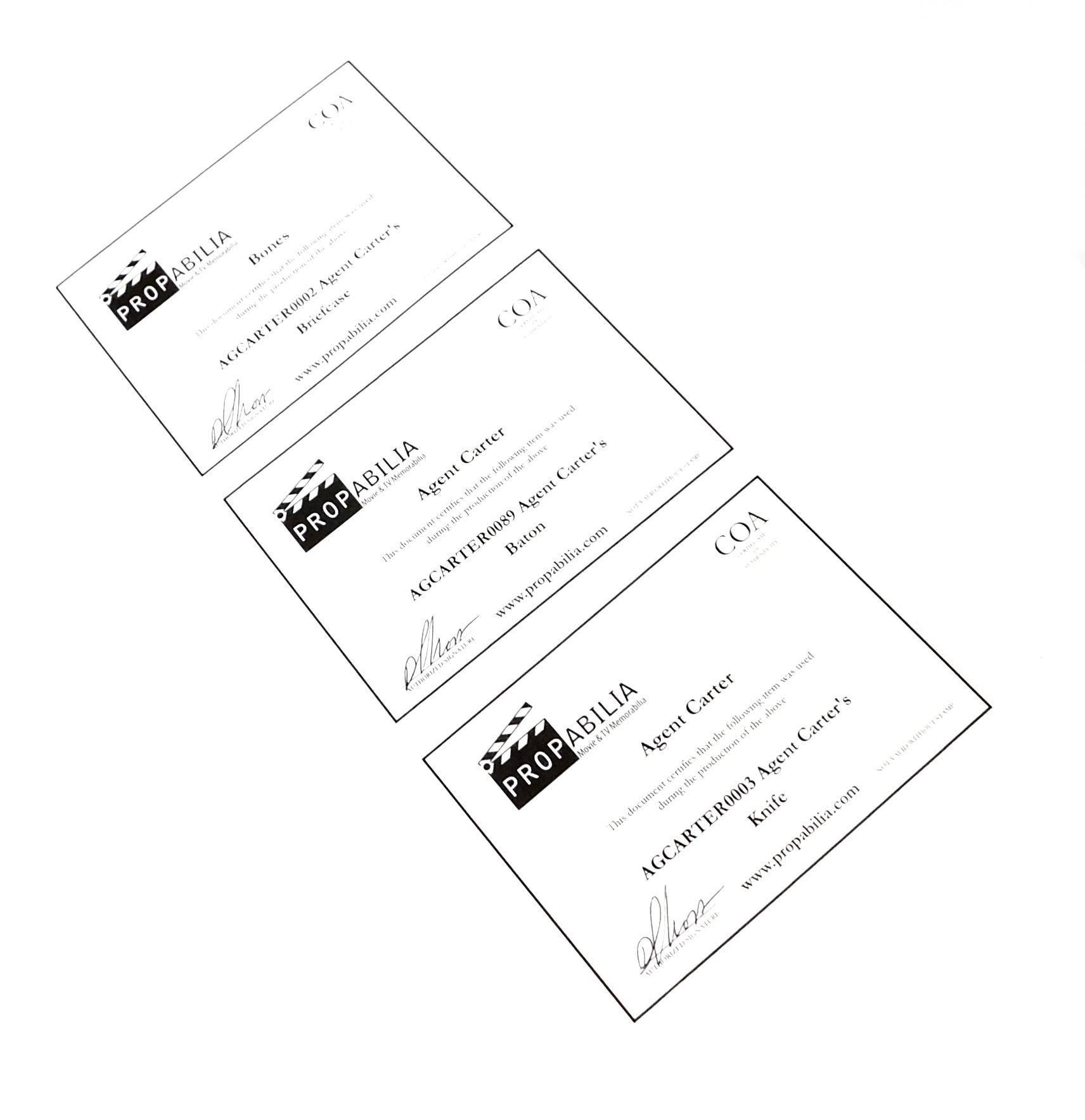 Propabilia guarantees the attribution of each lot of Property as stated in the title block of that lot of Property in the Auction catalogue, each lot of property comes with its own Certificate of Authenticity (COA). Bidders should be aware that multiple examples of props and costumes are frequently used during production (hence the Propmasters saying 'one and done'), usually as few as 3 or as many as 6 or more pieces may be used to represent the item on screen. It is often impossible to determine whether a specific piece has been used on-camera. Any specific details about the property known to Propabilia will be noted within the description, but no warranties are given by Propabilia as to that description.