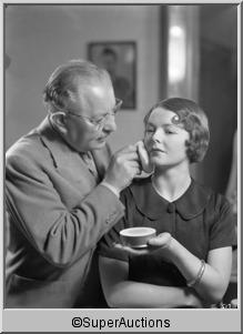 Agnes Doyle Darrell from The Max Factor Collection / (1) Nitrate Negative No. 517 of Agnes Doyle Darrell Posing while Max Factor Applies Face Powder Make-Up