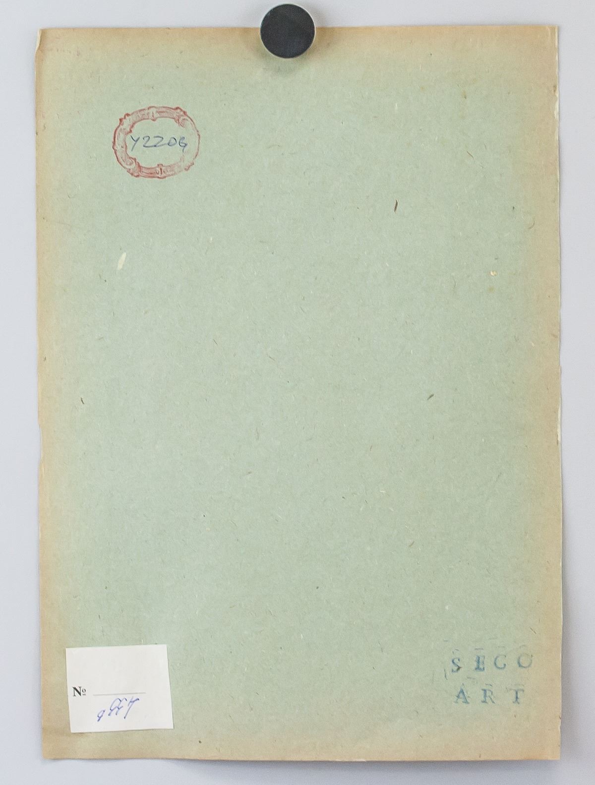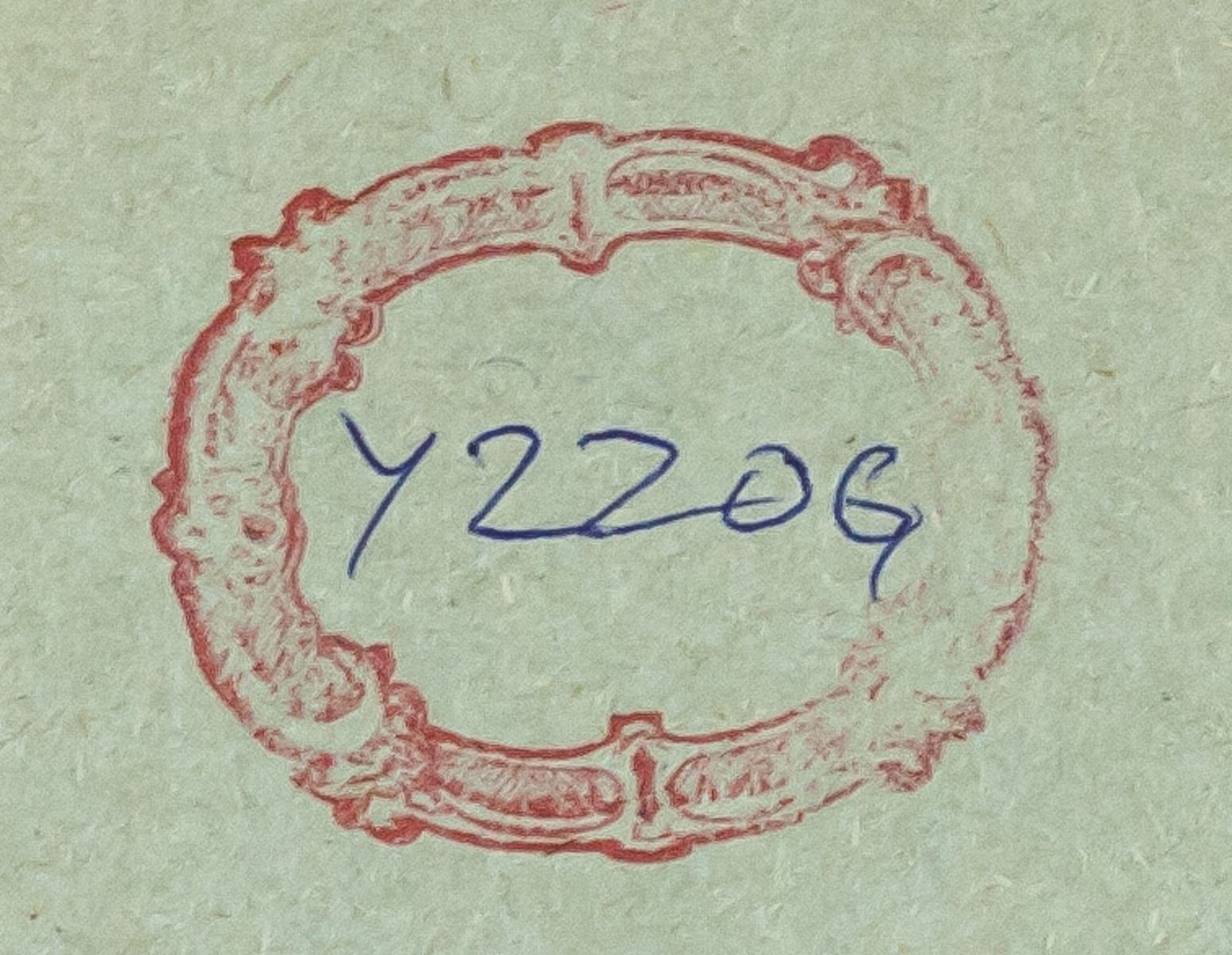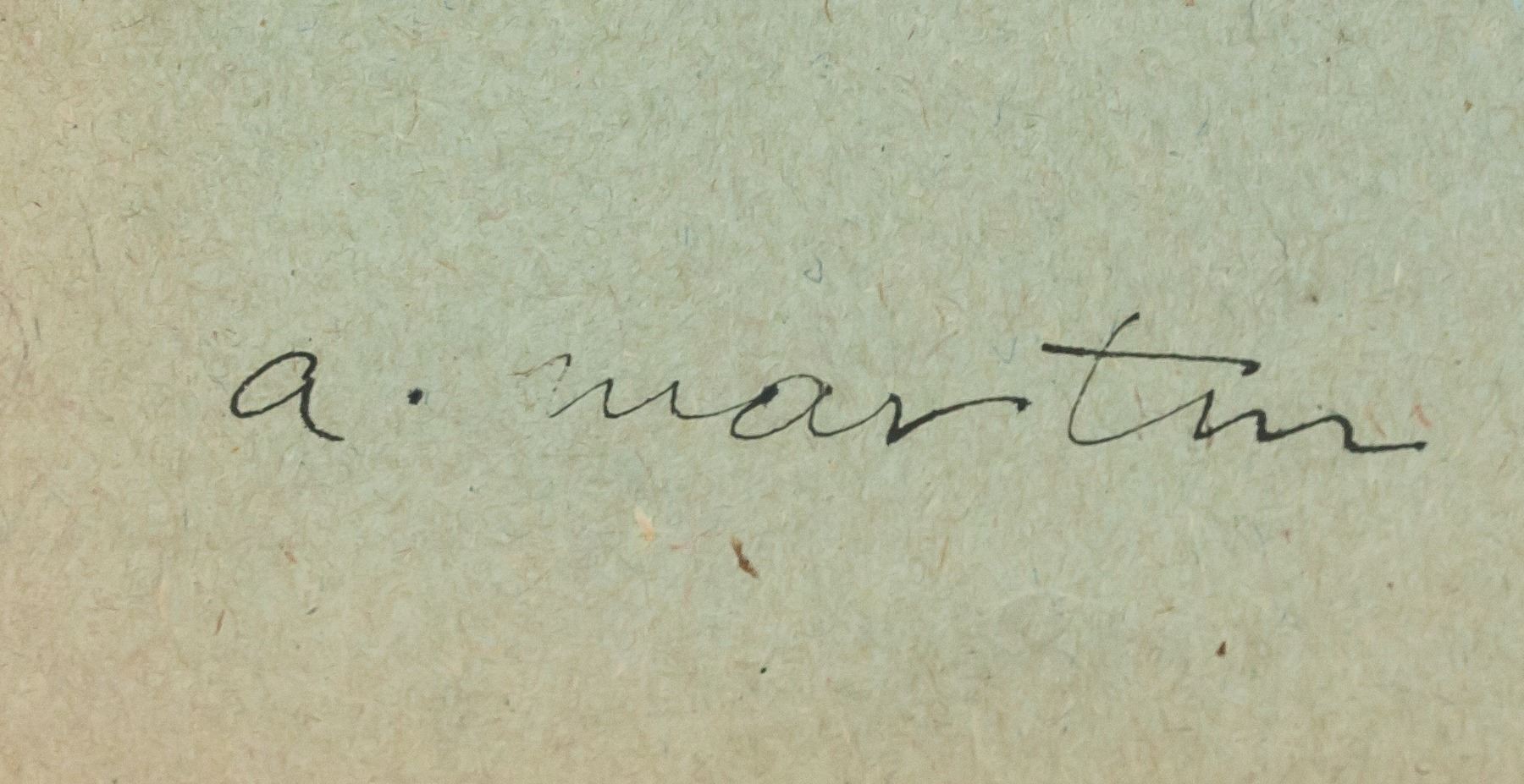 Ink on paper. Featuring modernist composition of an oval with grid lines. Signed "a. martin" in the bottom left corner. Red circular stamp on verso with "Y220G" inscribed in the center. Label affixed to verso reads "No 433B" with "4338" inscribed upside down. "SEGO ART" stamped on verso. Attributed to Agnes Martin (1902-2004, American-Canadian). 33 x 24 cm (13 x 9.25 inches). PROVENANCE: This lot carries limited provenance from a Southern Ontario estate