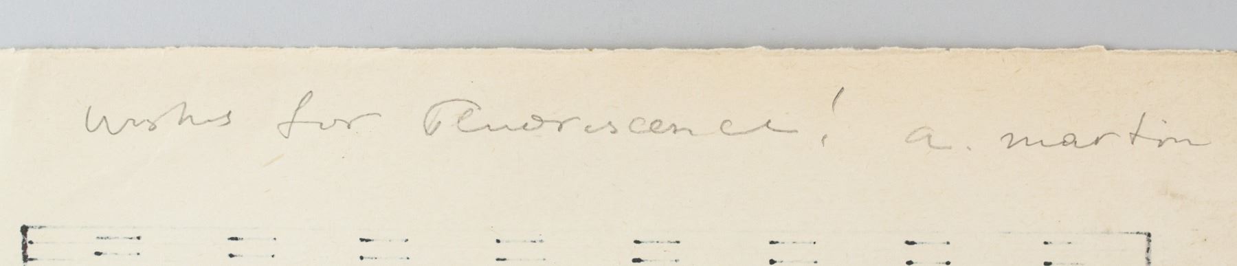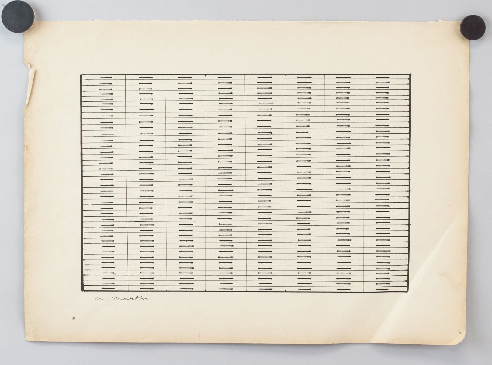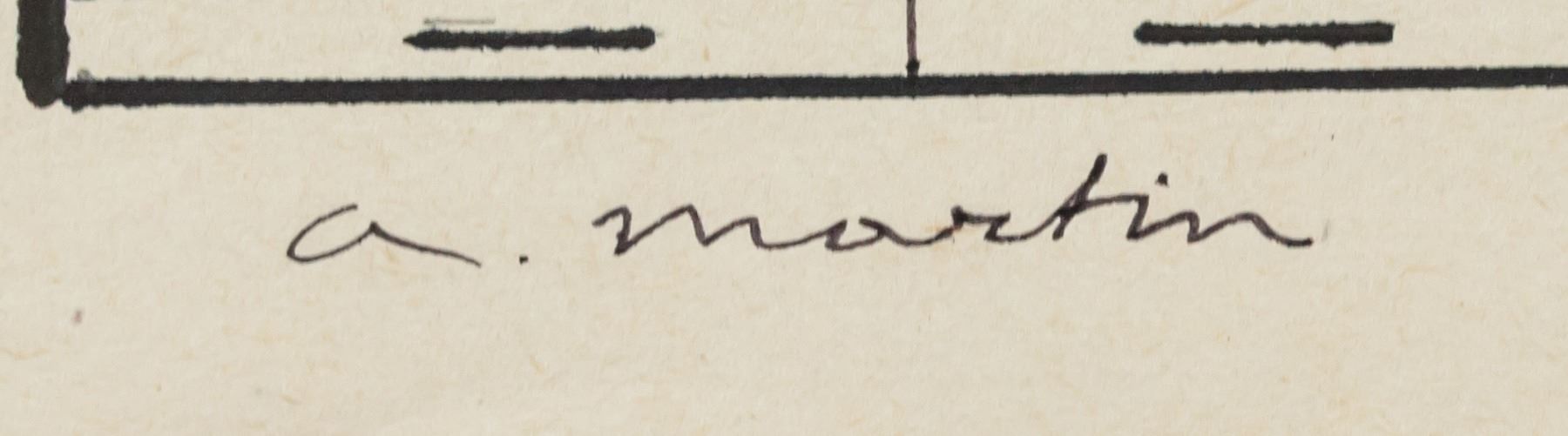 Ink on paper. Featuring a grid line composition. Signed a. martin on the lower left corner. Inscribed illegibly and a. martin on upper margin of verso in pencil. Attributed to Agnes Martin (1912-2004, American-Canadian). 24.5 x 33.5 cm (13.25 x 9.5 inches). PROVENANCE: This lot carries limited provenance from a Southern Italian estate
