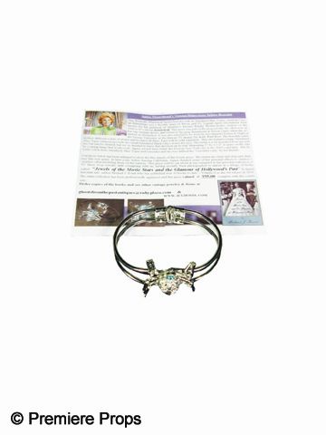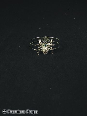 Spider bracelet with simulated blue topaz-Austrian Crystal Rhinestone and simulated black onyx pieces for the eyes, worn by actress Agnes Moorehead as Endora the Witch on the television series Bewitched (1964-1972). Endora was the opinionated mother of Samantha (Elizabeth Montgomery) on the series, frequently finding herself at odds with Darrin (Dick York/Dick Sargent). The piece was offered by Moorehead to a children's charity and was thereafter purchased by a private collector. Complete with a certificate of authenticity. (2.5" Diameter)