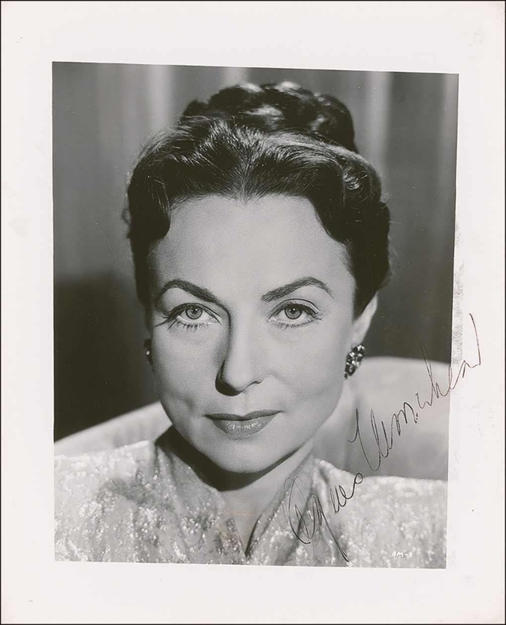 Distinguished actress who starred in the Orson Welles classics Citizen Kane and The Magnificent Ambersons; she later earned a place in the pop-culture pantheon as Endora on the TV series Bewitched. Vintage glossy 8 x 10 head-and-shoulders photo, signed in black ink. In very good condition, with some light skipping to signature, scattered creases to corners and borders, and some light spotting to bottom of image.
