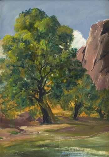 Agnes Tait. (1894-1981). Landscape Sketch. 14" x 10" oil on panel. Fine condition. Gold frame. Signed lower left. (est $1,000-2,000)
