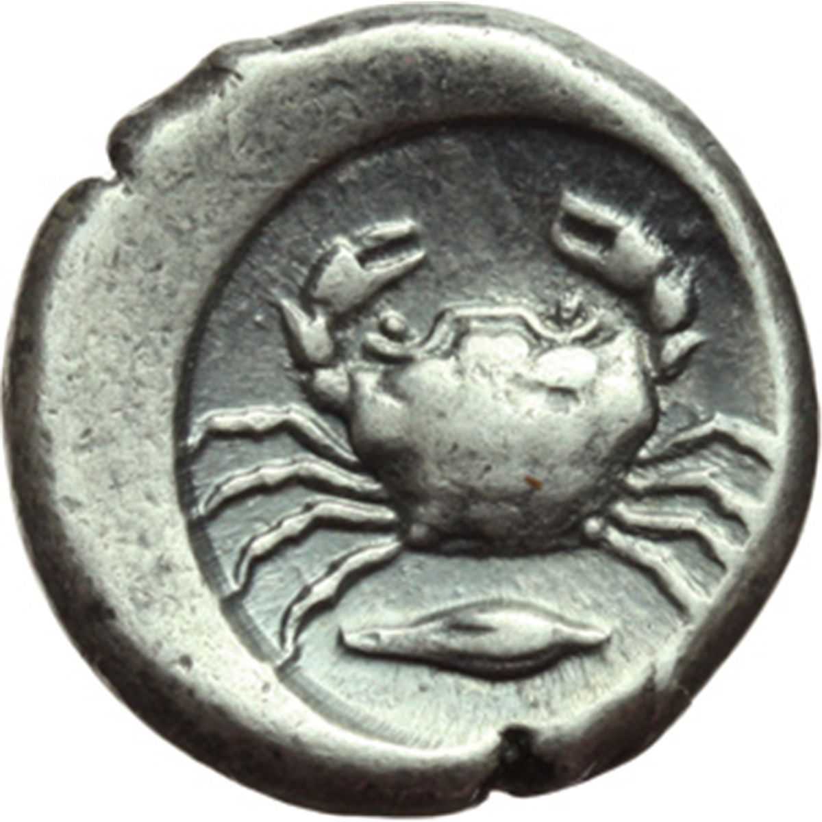Mondo Greco. Sicilia. Agrigentum. Didracma, 510-472 a.C. D/ AKRA. Aquila con le ali chiuse stante a destra. R/ Granchio. Sotto, chicco d'orzo. Cfr. SNG ANS 956. AG. g. 8.69 mm. 19.50 Bel BB+/qSPL.