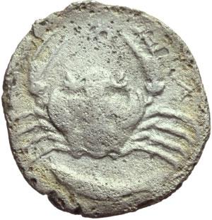 Mondo Greco. Sicilia. Agrigentum. Emidracma, 413-406 a.C. D/ Aquila, stante a destra con le ali aperte, ghermisce una lepre. R/ Granchio. Sotto, pesce. A destra, A [ ]. Cfr. SNG ANS 1011 var. AG. g. 1.84 mm. 16.00 Metallo poroso. MB.