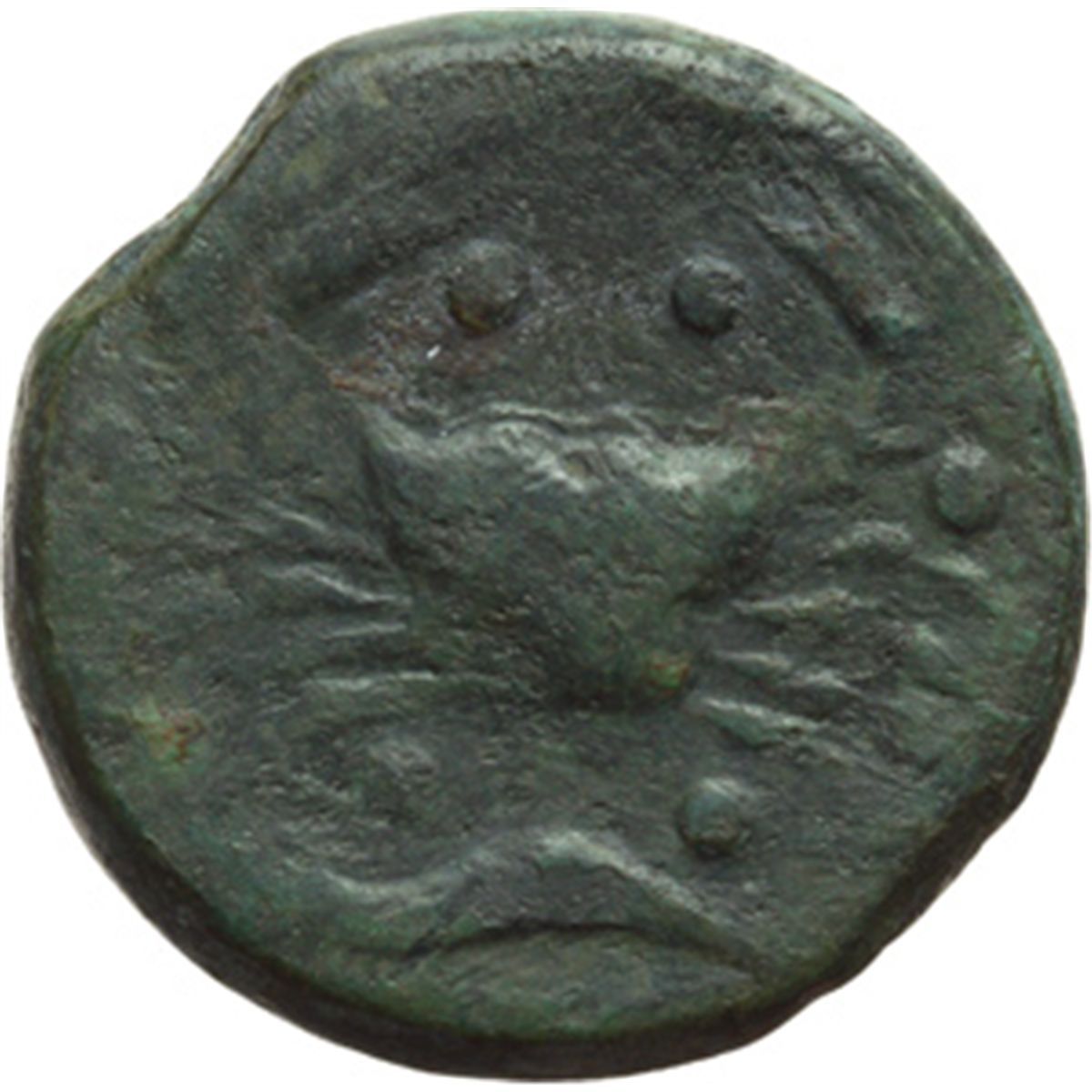 Mondo Greco. Sicilia. Agrigentum. Emilitra, 425-406 a.C. D/ Aquila stante a destra ghermisce un pesce (?). R/ Granchio. Intorno, sei globetti. Sotto, gambero. Cfr. SNG Cop.67 var. AE. g. 12.52 mm. 26.00 BB.