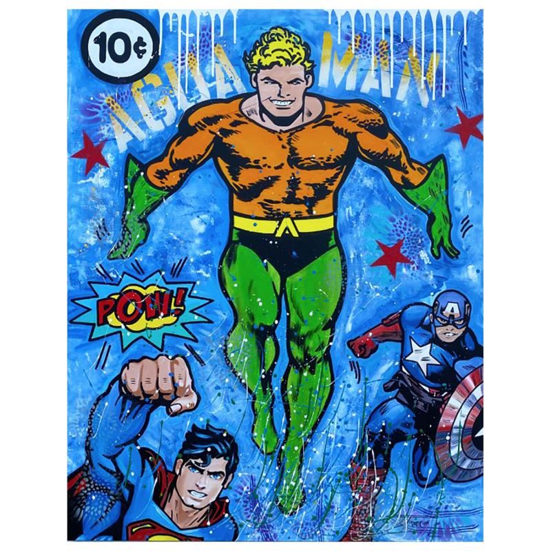 "Aguaman" is an original mixed media acrylic on canvas by Jozza. The piece is hand signed and comes with certificate of authenticity. Measures approximately 40" x 48".