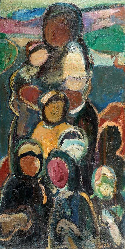 Aharon Giladi, Israeli Art, 1907 - 1993, Family, Oil on canvas, 130x65cm, Signed., , , , ,