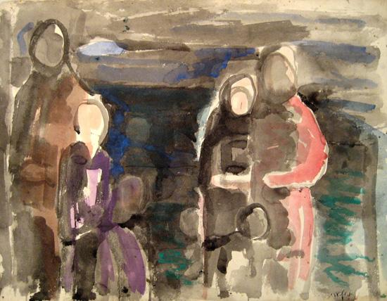 Aharon Giladi, Israeli Art, 1907 - 1993, Figures in the Sea of Galilee, Watercolor, 51x67cm, Signed., , , , ,