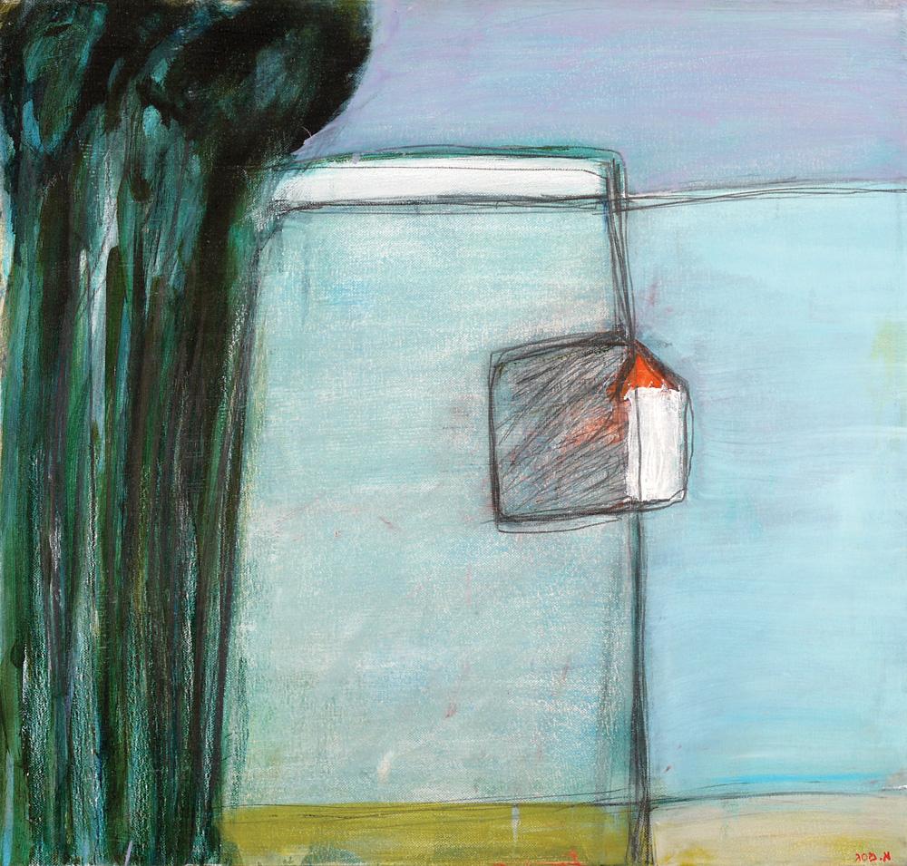 Aharon Messeg, Israeli Art, B. 1942, House and Trees in Kibbutz Ginosar, 2008-2010, Oil on canvas, 59x62cm, Signed. Signed again, dated and titled on the reverse., , , , ,