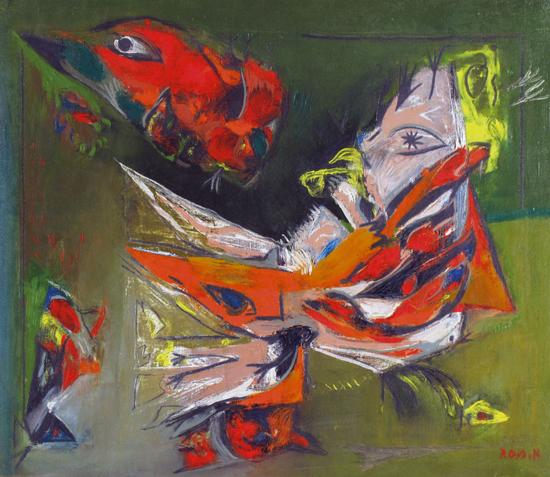 Aharon Messeg, Israeli Art, B. 1942, Birds, Oil on canvas, 54x65cm, Signed., , , , ,