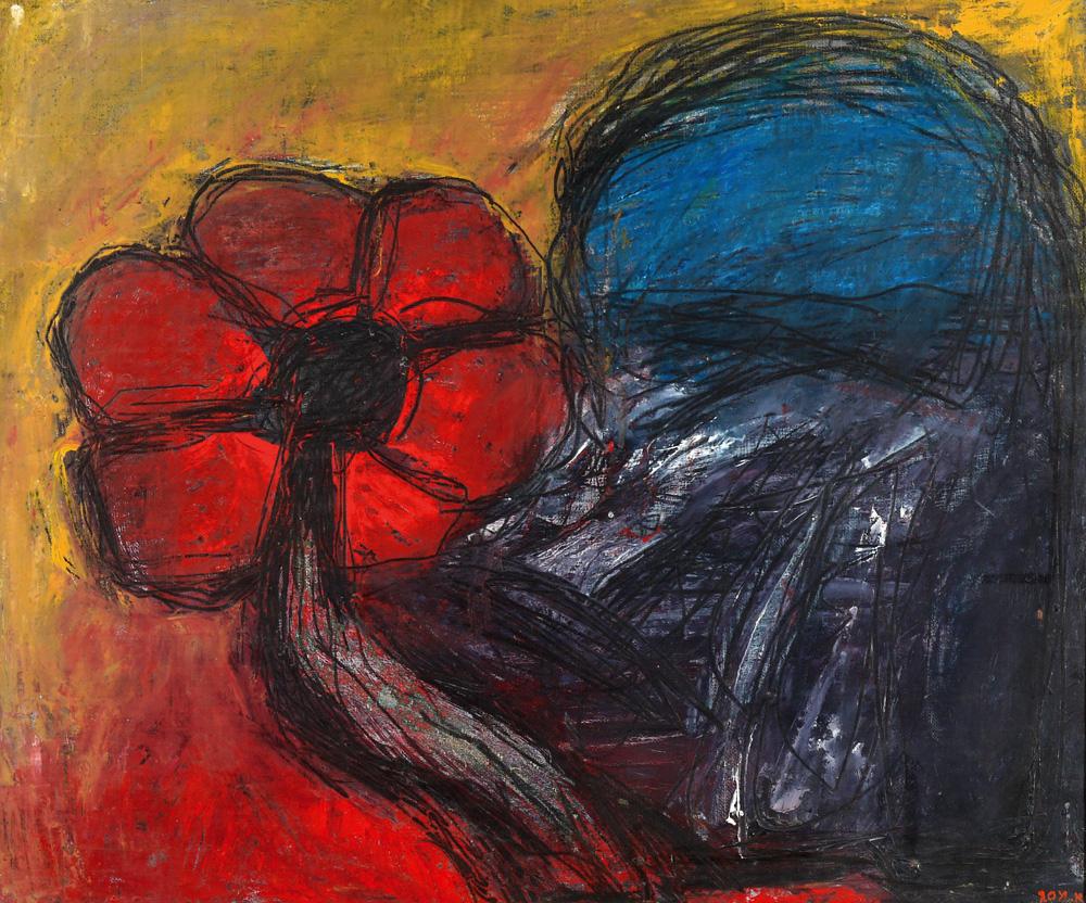 Aharon Messeg, Israeli Art, B. 1942, Anemones, Oil on canvas, 52x61cm, Signed., , , , ,