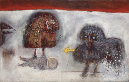 Aharon Messeg ,B. 1942 ,"Birds, 1970 ,Oil on canvas ,73x116 cm ,Signed. , , , , ,