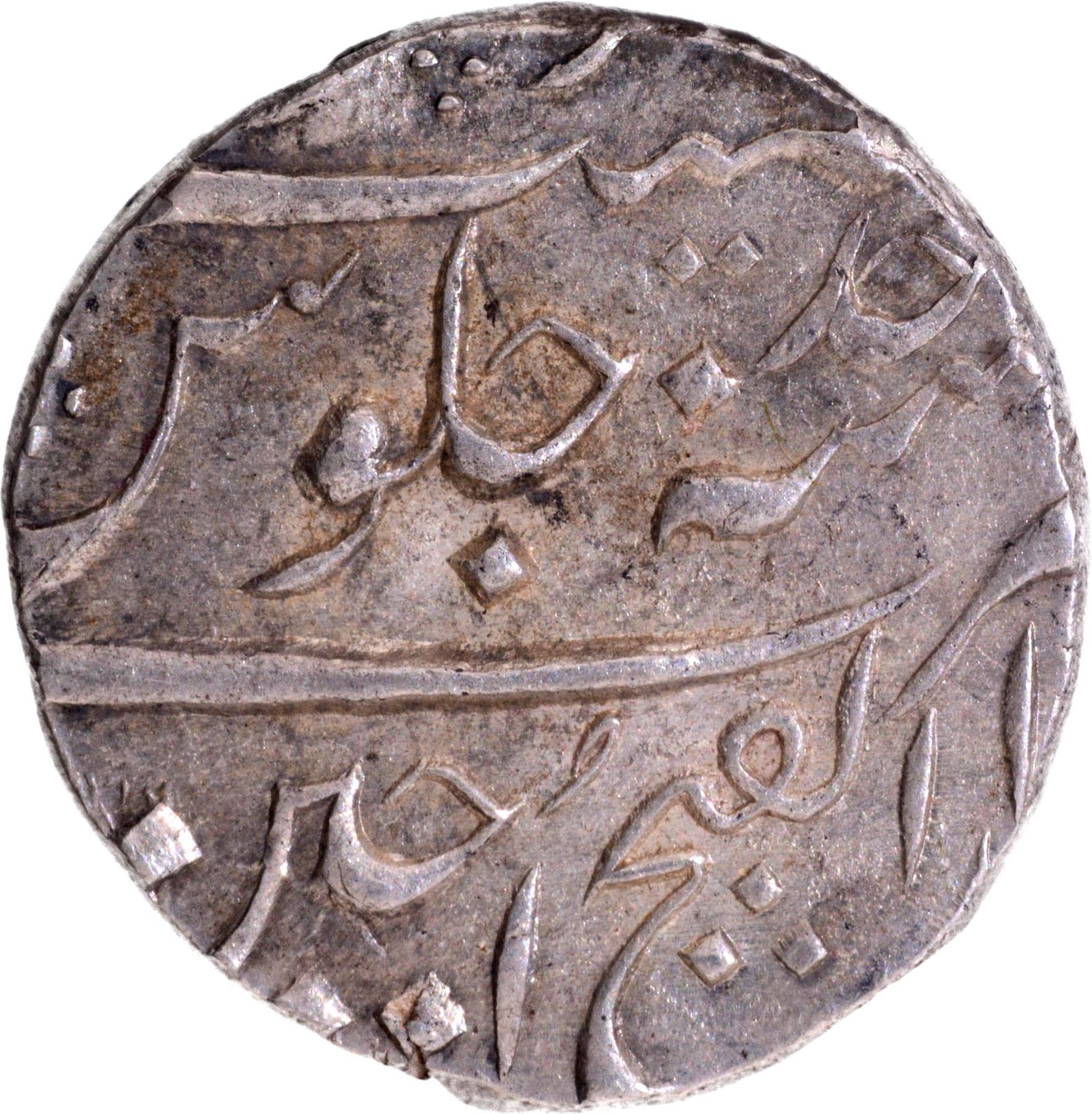 Ahmad Shah Bahadur ( AH 1161-1167 /1748-1754 AD), Ujjain Dar ul-Fath Mint, Silver Rupee, Ahad RY, Obv: Persian legend "Sikka Mubarak Badshah Ghazi Ahmad Shah Bahadur", Rev: Persian legend "sana Ahad julus" & "zarb Ujjain" with the epithet "Dar-ul-fath" at the bottom, 11.50g, 22.85mm, (Unlisted in KM), test mark on the edge, sharp struck, about extremely fine, Very Rare.