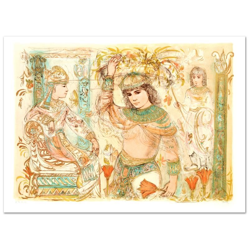 "Aida" is a limited edition lithograph on paper, numbered and hand signed by Edna Hibel (1917-2014). Includes Certificate of Authenticity! Measures approx. 42" x 30" (with border), 38" x 27" (image).
