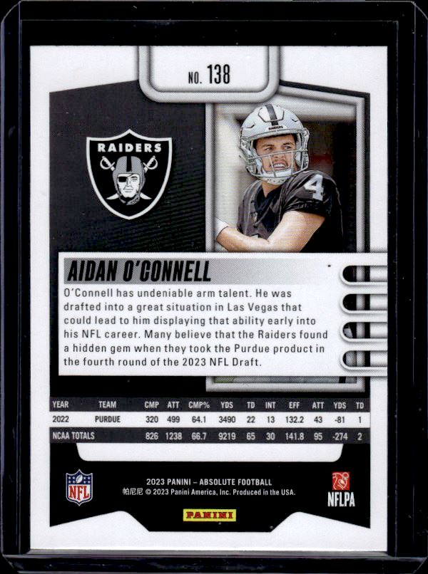 Aidan O'Connell Rookie Card 2023 Panini Absolute #138